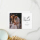 elegante, nos casamos com design de anúncio de fotos de casamento com uma adorável carta preta. A imagem da noiva e do noivo e a cor e o texto podem ser personalizados.