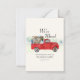 Compartilhe a alegria da sua nova casa e mudança de endereço com amigos e familiares com este cartão de anúncio de caminhão vermelho vintage em aquarela.