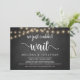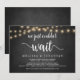 Nós simplesmente não conseguimos esperar, Anúncio de Casamento Fugitivo / Convite de casamento, em quadro de giz de fazenda rústica, design de luzes de corda. Isto é perfeito para a recepção do seu casamento e festa de celebração pós-casamento. Adicione seus detalhes no mesmo tipo de letra / letra.