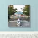 Esta bela fotografia mostra o Crucifixo gigante no final do lago Rosary Rosary, no Shrine de Nossa Senhora da Fátima e Basilica, em Lewiston, Nova Iorque.