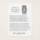 Esta é uma bela imagem de Nossa Senhora de Guadalupe num pergaminho cercado por flores. Nas costas está esta oração: Lembrem-se, A Virgem mais graciosa de Guadalupe, que nas vossas aparições no Monte Tepeyac prometeu mostrar piedade e compaixão a todos aqueles que, amando e confiando em vocês, buscam a vossa ajuda e proteção. Assim, ouçam agora as nossas suplicações e deem-nos consolo e alivio. Temos cheio de esperança de que, apoiando-nos na vossa ajuda, nada nos possa perturbar ou afetar. Como o senhor permaneceu conosco através da sua admirável imagem, obtenha-nos agora os meios de que necessitamos. Amém. (Crédito: catholictradition.org)
