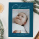 Cartão de nascimento de Natal elegante com tipografia que diz "nosso milagre de Natal" com coração. Este é um cartão de anúncio de nascimento para as férias! Adicione suas fotos, estatísticas de natalidade e uma mensagem! A foto vertical funciona melhor na frente. O fundo é alto.