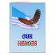 Enviar uma saudação a um veterano com este cartão de heróis. Uma bela paisagem de montanha com uma águia careca voando no céu.