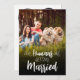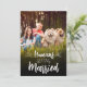 Nossos humanos vão se casar com o convite para casamento de fotos de cachorro. Inclua seu cachorro ou outro animal de estimação em sua preparação de casamento com este convite de casamento bonito e informal. A frente deste cartão de convite é facilmente personalizável com uma de suas fotos favoritas, e apresenta a legenda "nossos humanos estão se casando". A parte de trás do cartão é personalizável com seus nomes, data do casamento, hora e local. Entre em contato conosco para obter assistência para o design através do Zazzle Chat ou envie um email para stephanyanddany@gmail.com. Responderemos dentro de 12 horas.
