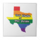 Este trabalho de arte colorido apresenta o estado do Texas criado de um arco-íris.