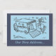 Novo cartão de endereço. Diversão do estilo do desenho animado anunciando que você tem uma mudança de endereço e para dar ao destinatário os novos detalhes do endereço.