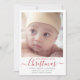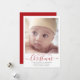 Um simples design minimalista para este cartão de natação de feriado. A design apresenta uma grande foto com a nossa Feliz Pequeno Natal em tipografia verde. Personalize com o nome, data de nascimento, estatísticas de nascimento e nomes dos pais. O reverso é coordenado em vermelho