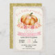 O convite de aniversário de abóbora de cor aquática floral desta menina apresenta dois arranjos florais de cor aquática, na sua maioria cor rosa, e uma abóbora grande sobre um fundo de creme com borda aquarela leve. A parte de trás dos recursos do convite é uma imagem falsa de brilho dourado. Estão disponíveis mais convites florais de aniversário para abóbora de aquarelas na loja. O convite de aniversário de abóbora de cor aquosa floral desta menina está pronto para ser personalizado e é adequado para uma rua, segundo ou aniversário de 3 anos.