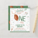 Celebre o primeiro aniversario do seu novato com o Convite para primeiros aniversarios do Orçamento de Futebol do Our Rookie. Este cartão de convite vibrante, amigável ao orçamento, apresenta adoráveis decorações de futebol americano, esquema de cores verde e marrom, confetti que energiza a atmosfera e um megafone que adiciona entusiasmo. Este convite de aniversário atraente e engajador é perfeito para os pais que querem um barato, mas memorável, para o primeiro marco do seu filho. Então, coloque seus calçados e deixe sua pequena estrela brilhar e aproveite um dia de diversão com este convite de aniversário.