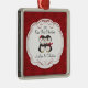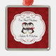 Nosso costume que datado original nossos primeiros enfeites de natal caracterizam um pinguim bonito no casal do amor ajustou-se em um fundo vermelho do damasco! Personalize com sua informação e data e você são todos ajustam-se para ir! Presente datado maravilhoso da lembrança para um primeiro Natal dos casais e uma grande adição a você coleção dos enfeites de natal.