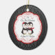 Nosso costume que datado original nossos primeiros enfeites de natal caracterizam um pinguim bonito no casal do amor ajustou-se em um fundo preto do damasco! Personalize com sua informação e data e você são todos ajustam-se para ir! Presente datado maravilhoso da lembrança para um primeiro Natal dos casais e uma grande adição a você coleção dos enfeites de natal.