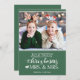 Celebre o seu primeiro Natal como a Sra. e Sra. com este cartão de férias bonito com um modelo de fotografia personalizável e uma bela legenda em fontes brancas sobre um fundo verde festivo.
