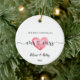 Nosso Coração de Ornamento Casado de Natal Celebra seu primeiro Natal como um casal casado com este lindo ornamento personalizado! Uma manutenção perfeita para marcar o início da sua vida juntos, este ornamento personalizado faz um presente de Natal bem pensado para recém casados ou uma adição romântica à sua própria árvore de Natal. Adicione nomes, ano de casamento ou uma mensagem especial para criar uma memória única que dura para sempre.