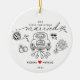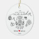 Celebre sua primeira temporada de festas como um casal casado com este elegante Enfeites de natal de dois lados. A frente apresenta uma ilustração engraçada de preto-e-branco de um carro "Recem casados" rodeado de detalhes do casamento, enquanto a parte de trás lhe permite mostrar sua foto favorita do casamento. Um bem pensado para recém-casados, este ornamento personalizado faz uma bela adição à sua árvore de férias ou um presente sincero para o primeiro Natal de um casal juntos. Feito com um acabamento cerâmico brilhante e corda pendurada em ouro, este ornamento personalizado é uma forma eterno de lembrar seu ano de casamento enquanto decora sua árvore de Natal em estilo. Personalize com nomes, ano e foto para criar um tesouro de feriado único.