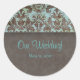 Casamento tema damasco rsvp guarde a data Stickers em azul-turquesa e castanho. Trendy e elegante. com