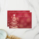 Design elegante de "Nota de Agradecimento" de casamento com árvore de Natal cintilante no motivo Vermelho e Dourado, nomes personalizados e texto de data. Impressione sua família e amigos com este design moderno e sofisticado. Totalmente personalizável! Fácil de usar e fácil de personalizar.