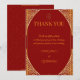 Expresse sua gratidão em estilo tradicional real com este Modelo de Cartão de Agradecimento de Casamento Indiano Vermelho e Dourado. Com um rico fundo vermelho simbolizando amor e prosperidade, combinado com elegantes acentos florais e de mandala em dourado, este design complementa perfeitamente o seu conjunto de papelaria de casamento indiano.