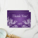 Design elegante de "Nota de Agradecimento" de casamento com motivo Redemoinhos Vintage 2 Roxo, nomes personalizados e texto de data. Impressione sua família e amigos com este design moderno e sofisticado. Totalmente personalizável! Fácil de usar e fácil de personalizar.