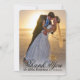 Nota de Agradecimento | Cartão de Nota de Foto de Casamento Simples.Envie sua mensagem de agradecimento de casamento como recém-casados para seus amigos e familiares usando este cartão simples, elegante e memorável de agradecimento de casamento com foto plana com sua foto de casamento e as palavras "obrigado" escritas em uma sobreposição de texto de tipografia de escrita manual preta. Substitua a foto de amostra pela sua própria foto de casamento para criar um cartão de agradecimento personalizado.