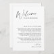 Adicione um toque pessoal às suas bolsas de boas-vindas do casamento com esta maravilhosamente projetada Nota de Boas-vindas do Casamento e Cartão de Linha do Tempo de Pedido. Apresentando um layout simples e moderno, este cartão é ideal para agradecer aos seus convidados por terem vindo e compartilhando seu calendário e itinerário de eventos, ajudando os convidados a se sentirem apreciados e organizados.