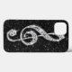 Caso elegante e glamouroso. Lindo, deslumbrante, a moda imprimiu a imagem prata e os diamantes misturando a nota musical em um fundo de imagem impresso cintilante preto. Um presente bonito, elegante, elegante, na moda, bonito para ela ou qualquer amante de música.