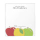O bloco de notas personalizado do professor acentuou-se com um trio colorido de maçãs. Amplo espaço escrevendo e texto editável.