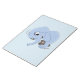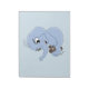 Notepad com design com uma ilustração de um elefante azul com um rato marrom; ilustrada por Radka Kavalcova/MaxiHarmony
