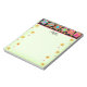 Desfrute do seu amor por colchar com este bloco de anotações com um cabeçalho de bloco de ancoragem preto no topo e personalizado com seu nome abaixo do cabeçalho. presente de excelente para os seus amigos. A arte quilt é baseada em blocos de mantas de retalhos favoritos, como a cabana de madeira e os blocos de estrelas, mais blocos únicos em cores dinâmicas e vibrantes de laranja, amarelo, rosa, turquesa e verde limão. Os backagrouns são pretos que fazem as cores pop para uma bela paleta de cores. A parte escrevendo desse bloco de notas é verde-claro com flores pequenas decorando as bordas. Quilt art é a arte original da designer de tecidos e colchas Phyllis Dobbs. Esta arte está disponível em outros produtos e em vários planos coloridos. Os produtos de empresas de quinta categoria estão disponíveis na loja da Phyllis'Business withFlair. Corresponder com carimbos coordenadores, envelopes, adesivos e etiquetas de endereço de retorno.
