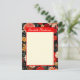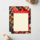 Esta placa de papelaria vertical do tamanho 4.25x5.5 A6 personalizável apresenta o seu nome contra uma placa de nome vermelha alegre, com uma ilustração floral vibrante, dramática, vermelha e creme num fundo escuro