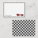 Este cartão de nota personalizado apresenta um antigo cartão de corrida vermelho.