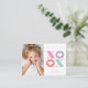 Este cartão horizontal de dia de os namorados em sala de aula de Stacey Meacham apresenta grande pastel alternado, tipo xoxo de cor de sherbert com corações em fundo branco. A parte traseira da placa tem uma cor rosa correspondente que pode ser removida ou gravada para adicionar uma mensagem pessoal aos amigos. É ousado e gráfico. Perfeito para o cliente moderno e experiente.