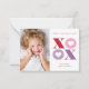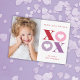 Este dia de os namorados horizontal em sala de aula de Stacey Meacham apresenta grandes tipos alternados de xoxo vermelho, rosa e roxo com corações em fundo branco. A parte traseira da placa tem uma cor vermelha correspondente que pode ser removida ou gravada para adicionar uma mensagem pessoal aos amigos. É ousado e gráfico. Perfeito para o cliente moderno e experiente.