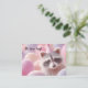 Este adorável cartão de aniversário é garantido para trazer um sorriso ao rosto de qualquer pessoa! A frente apresenta um adorável guaxinim usando um chapéu de festa, cercado por balões pastéis rosa e bege. O texto "É o seu dia!" define um tom divertido e comemorativo. A parte de trás do cartão tem um fundo rosa suave com uma mensagem sincera: "Que este ano seja repleto de alegria, amor e momentos inesquecíveis. Feliz Aniversário!" É uma escolha maravilhosa tanto para crianças quanto para adultos que apreciam um design caprichoso e encantador.
