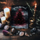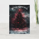 Cartão de Natal assustador. © Desejos do Coração Escuro. Este cartão tem uma árvore de Natal solitária nele com decorações e luzes vermelhas brilhantes. É vazio permitir que você adicione suas próprias mensagens de Natal.