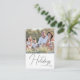 Mande desejos calorosos em estilo com nossa placa moderna de feriados felizes, personalizada com sua foto e seu nome na frente. Este cartão elegante e contemporâneo é perfeito para compartilhar sua alegria de férias com amigos e familiares. A parte de trás da carta apresenta um padrão tendencial de árvores de Natal abstrato, flocos de neve delicados, estrelas na moda e a palavra alegre "JOY", acrescentando um toque festivo aos seus cartões de natal. Quer você esteja enviando cartões de natal para entes queridos perto ou longe, esta carta personalizada é a maneira perfeita de espalhar felicidade e tornar sua mensagem realmente memorável.