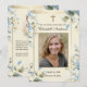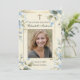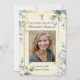 Apresentando um belo cartão de oração de fotos do funeral católico com design azul floral e a Bênção Mãe Maria segurando o Bebê Jesus. Todo texto e fontes podem ser modificados.