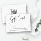 Placa de presente comercial de script de caligrafia minimalista moderna / Certificado de presente com envelope. Preto & Branco. Adicione seu site ou endereço da Web de mídia social ao Código de verificação QR. Permitir que os clientes utilizem a análise para aceder a informações sobre os seus itens, tais como produtos ou itens de menu.