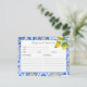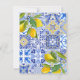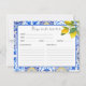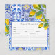 Azulejos mediterrânicas com limão-limão fruta de limão-limão Ela encontrou sua principal coleção temática espremendo traça limão com flores de limão e azulejos mediterrâneos azuis e brancos com receita para que a noiva seja texto. Uma noiva perfeita para ser um cartão de receita para uma festa de chá de panela.