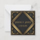 Este RSVP exclusivo e elegante deco de arte preto e dourado, chamado Nota Placa, apresenta uma grande estrutura geométrica dourada e intrincadas bordas de folhas botânicas em ouro. Edite o texto de acordo com as suas necessidades. Veja a suíte inteira em nossa Coleção de Velete Negro.