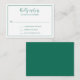 Um tom simples de joia emerald verde miniplaca RSVP de casamento, apresentando "gentilmente responda por" em uma elegante letra manuscrita e suas opções de resposta cercadas por uma borda fina. O esquema clássico e tradicional faz com que este cartão RSVP seja excelente para um convite formal de casamento.