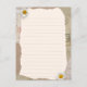 Linda página de notas de safra em cores bege e castanho, decorada com flores margaridas e selos de correio no fundo. Preencha as linhas com suas próprias notas ou qualquer outro texto.