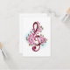 Uma clave cor-de-rosa com flores de cereja japonesa, delicadas e detalhadas, contra fundo branco pintado com tinta azul clara. Sakura cor-de-rosa.