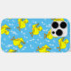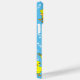 Um conjunto de notas musicais brancas e um pintinho amarelo bonito segurando um trombone contra um fundo azul é um design de música único para músicos de baixo nível, professores de música e estudantes de escolas em concertos, jazz e bandas de marchar.