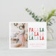 Este cartão de Natal fotográfico diz Fa La La La La e pode ser personalizado com o seu nome familiar e até mesmo com uma lista de nomes de crianças ou cães. Este é um cartão de saudação simples, mas bonito, para sua família e amigos na época de Natal.