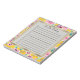 Bloco de notas amarelo de mostarda personalizado com flores cor-de-rosa e bloco de notas "Para fazer" revestido de cor dourada com caixas de verificação. Texto, fonte, tamanho da fonte, cor e posicionamento são completamente personalizáveis.