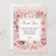 Cartões de agradecimentos com ilustração em estilo romântico antigo. Notas musicais, flores, borboletas e um violão. Uma vibração sentimental adorável.