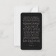 Encontre consolo e conforto nas palavras eternos do Salm 23 com esta carta de oração memorial serena. O texto do cheio do adorado salmo é apresentado elegantemente sobre fundo preto profundo, enquadrado por uma delicada fronteira ornamental. Este cartão é uma forma perfeita de comemorar uma vida vivida com fé e de oferecer conforto àqueles que estão em luto. Partilhar esta passagem da esperança e da paz como um guardião, lembrando a todos o amor e a orientação duradouros que transcende a perda. Que estas palavras sagradas sejam uma fonte de força e um belo lembrete da paz eterna. O verso apresenta uma longa passagem inspiradora ("Encha não o seu coração com dor") e uma mensagem mais curta, ou personalize com o seu