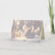 Este Cartão de Feriado bonito mostra um pequeno rato numa mesa decorada de Natal com velas brilhantes. As luzes estão dançando. Um cartão de Natal bonito para amigos e família! Texto e cor personalizados.