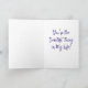 Comemore o amor com esta impressionante placa de saudação dobrada 5x7 com uma design de aquarela lúdica e romântica. O cobrir da frente mostra dois corações doces, um lendo "Love You" e o outro "Be Mine", cercado por uma onda de corações pastel e coloridos pelo arco-íris. Colocado contra um fundo azul sonhador com salpicos e gotas de aquarela, o trabalho de arte vibrante cria uma vibração caprichosa e afetiva. O sentimento "Você é a coisa mais doce da minha vida!" é exibido elegantemente em uma fonte escrita à mão, adicionando uma mensagem sincera ao design cativante.