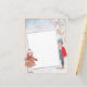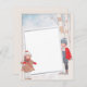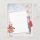 Enfie estas páginas nos seus cartões de Natal para adicionar uma nota especial de feriado aos seus entes queridos este ano. Um garoto e uma garota vintage seguram presentes de Natal e se posicionam contra um pano de fundo de árvores de pássaros. Página branca com borda prateada. Cartão de Natal igual disponível na loja de enfrancais.